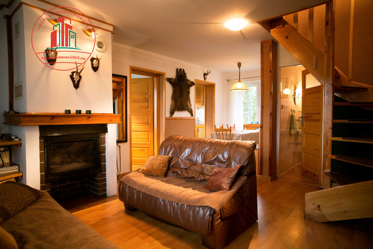 Parter: Kuchnia (zmywarka, lodówka z zamrażarką, pełne wyposażenie kuchenne), piwniczka. Salon podzielony na 2 części: jadalną i wypoczynkową. W części wypoczynkowej znajduje się kanapa narożna, TV sat. i kominek. Jedna sypialnia z podwójnym łóżkiem.