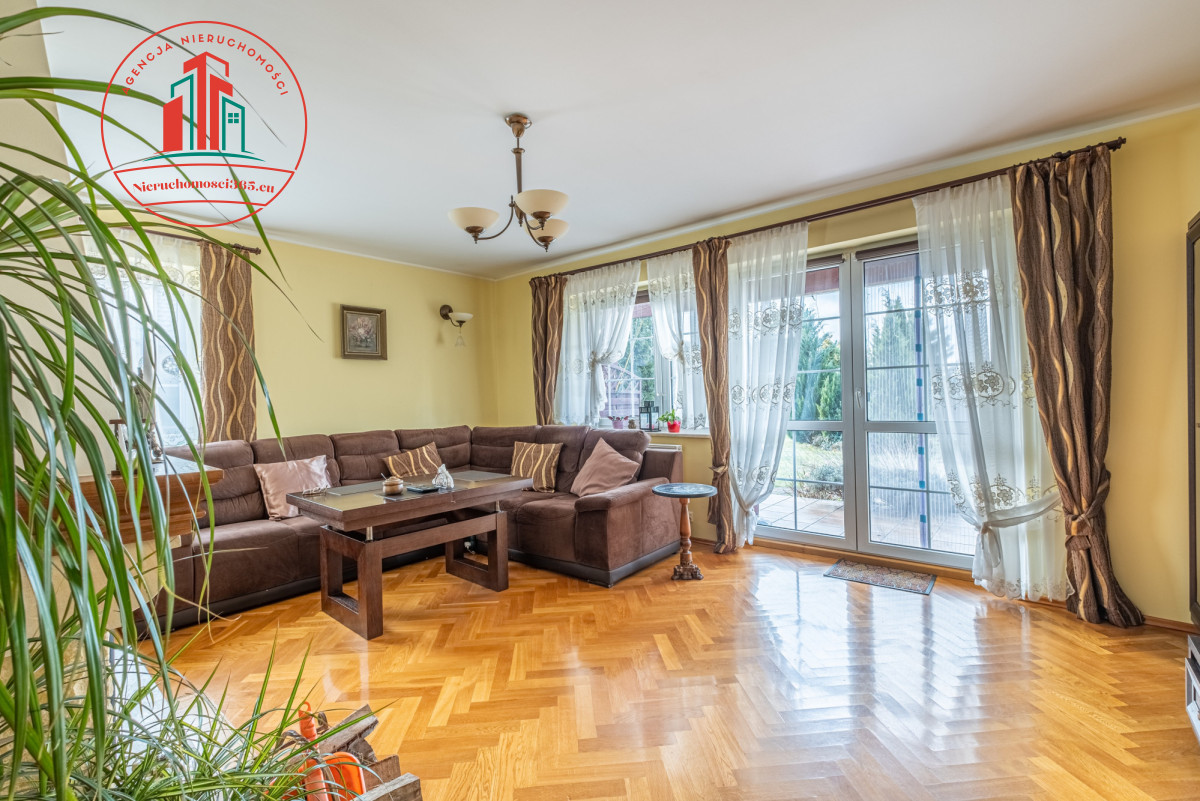 Szczególną zaletą domu jest przestronny piękny ogród do którego można się dostać prosto z salonu.