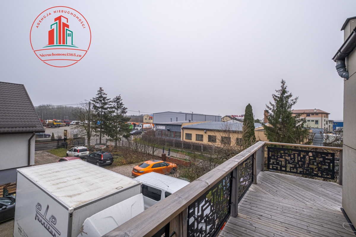 Działka na której posadowiony jest budynek ma powierzchnię 1142m2. Cały teren został zagospodarowany, poza zabudowaniami znajduje się tutaj duży parking dla gości.