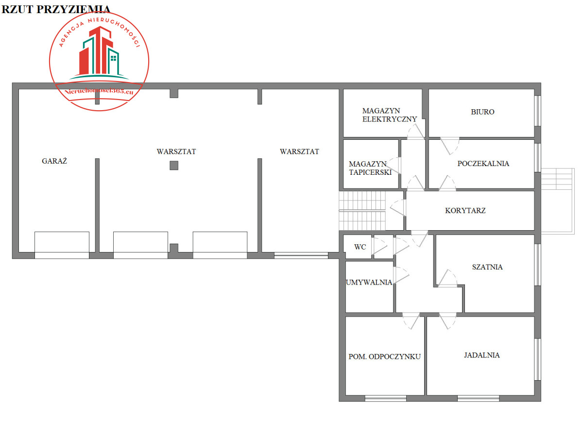 Powierzchnia użytkowa budynku stanowi około 650m2. Obecnie zabudowania podzielone są na część mieszkalną, wystawową oraz produkcyjno-usługową. Budynek daje jednak wiele możliwości przebudowania, a miejscowy plan zagospodarowania terenu zezwala na wprowadzenie modyfikacji.