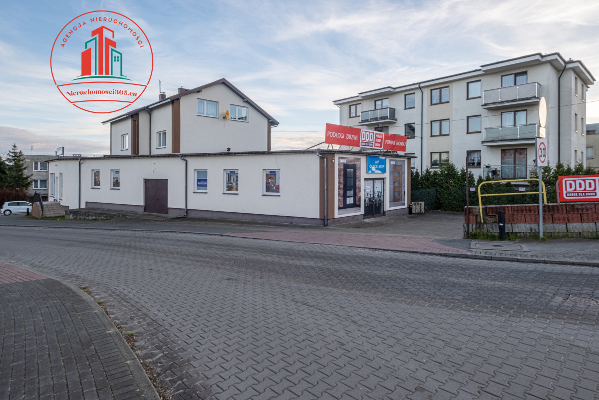 Do sprzedania nieruchomość o powierzchni użytkowej wynoszącej 700m2. Na tę powierzchnię składa się część sprzedażowa, magazyny, pomieszczenia dodatkowe takie jak część socjalna dla pracowników, ale także 2 niezależne mieszkania o powierzchni 100m2 każde.